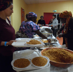 Et pour finir, après la transformation en un tournemain de la salle de spectacle en salle de restaurant, le repas « Saveurs du Monde » préparé par 10 associations a réjoui les papilles, entre spécialités du Maghreb, de l'Afrique, mais aussi de l'Inde... Un moment de convivialité et d'échanges où l'artiste Saïd, comme l'an dernier, est passé de table en table discuter avec les convives qui ont eu l'air d'apprécier autant que l'an dernier ce contact direct avec lui.